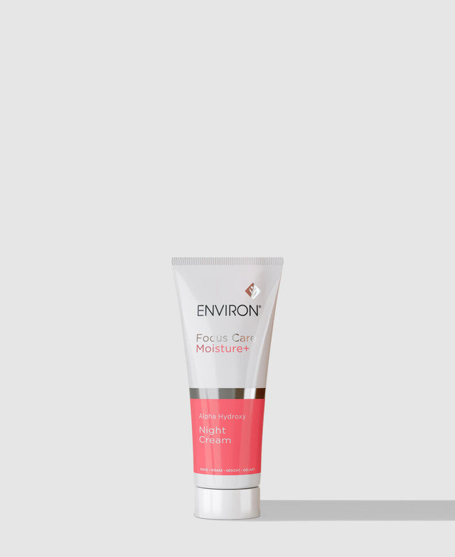 Environ Focus Care Moisture+ Alpha Hydroxy Night Cream is specially formulated with medium concentrations of Glycolic Acid and Lactic Acid which may help to improve textural problems associated with dehydration, leaving the skin feeling softer and looking smoother. Its mild exfoliating formula helps to refine the appearance of your skin’s texture whilst maintain the skin's hydration.