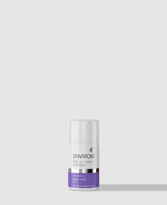 Environ Focus Care Clarity+ Vita-Botanical Sebu-ACE Oil. Scientifically formulated with vitamins and botanicals, this lightly textured non-oily oil helps to control the appearance of breakouts by providing your skin with a daily dose of essential vitamins. Take charge and conquer confidence-crushing breakouts and reveal clear, healthy-looking skin with Environ’s new Focus Care™ Clarity+ Range. PHASE II: CONTROL It’s time to focus on CONTROL by preventing the formation of CONSPICUOUS bumps and oily shine. A lightly textured botanical & vitamin enriched oil that helps to control the appearance of blemishes. It is scientifically formulated to provide skin with essential vitamins A,C & E leaving the skin looking & feeling healthier & smoother.